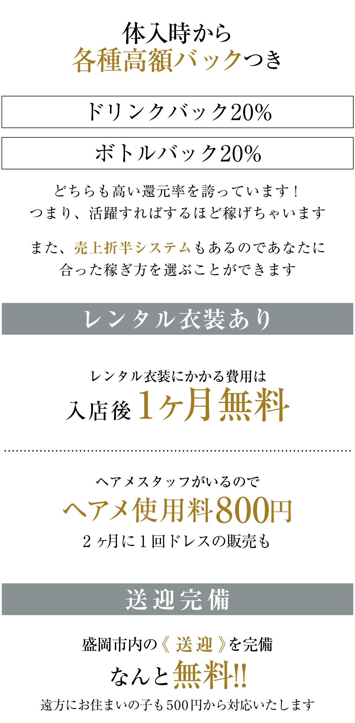 ■各種バックあり ・ドリンクバック:20% ・ボトルバック:20% |